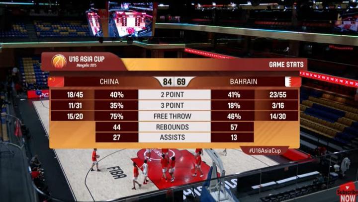 进入下半场,中国队顶住了巴林队的反扑,尤其分差被缩小到10分时,依靠几波进攻得分,最终84-69取得一场15分优势的大胜。