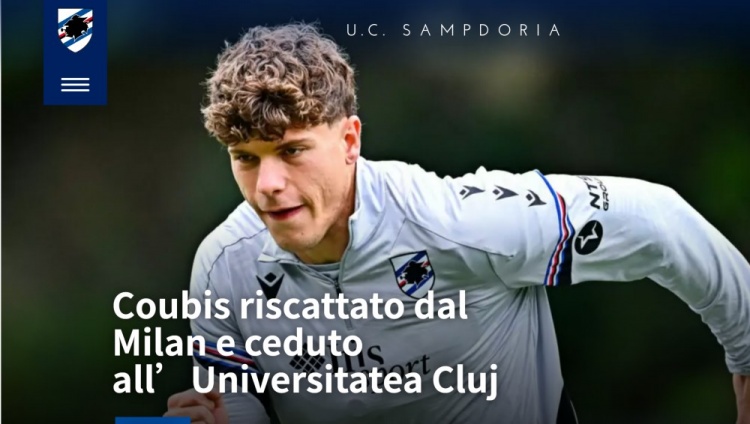 米兰发布公告,确认安德烈·库比斯永久转会桑普,而桑普在公告中确认,俱乐部签下安德烈·库比斯之后,将这位22岁的中卫外租至罗马尼亚俱乐部克卢日,协议中包含有条件的强制买断条款。